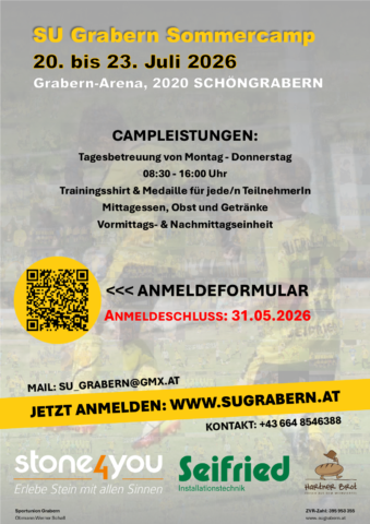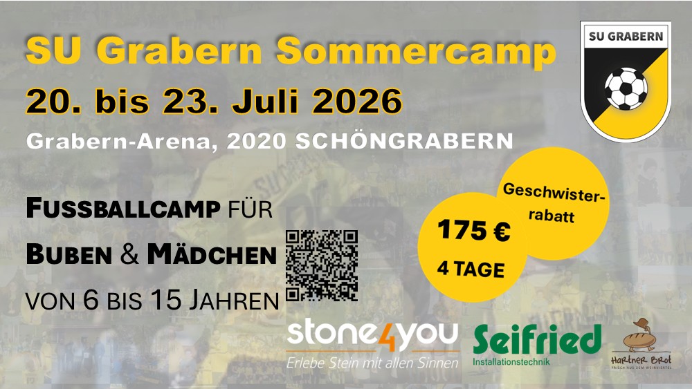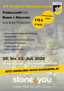 Von 20. bis 23. Juli 2026 findet in unserer Grabern-Arena wieder ein Sommercamp für Nachwuchsfußballer und Nachwuchsfußballerinnen statt.