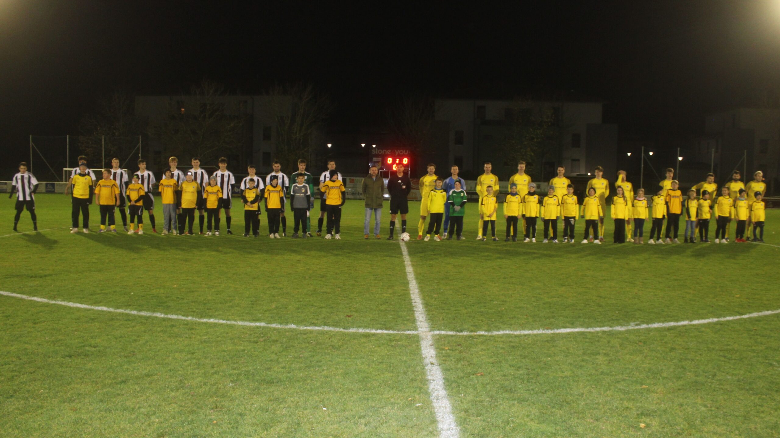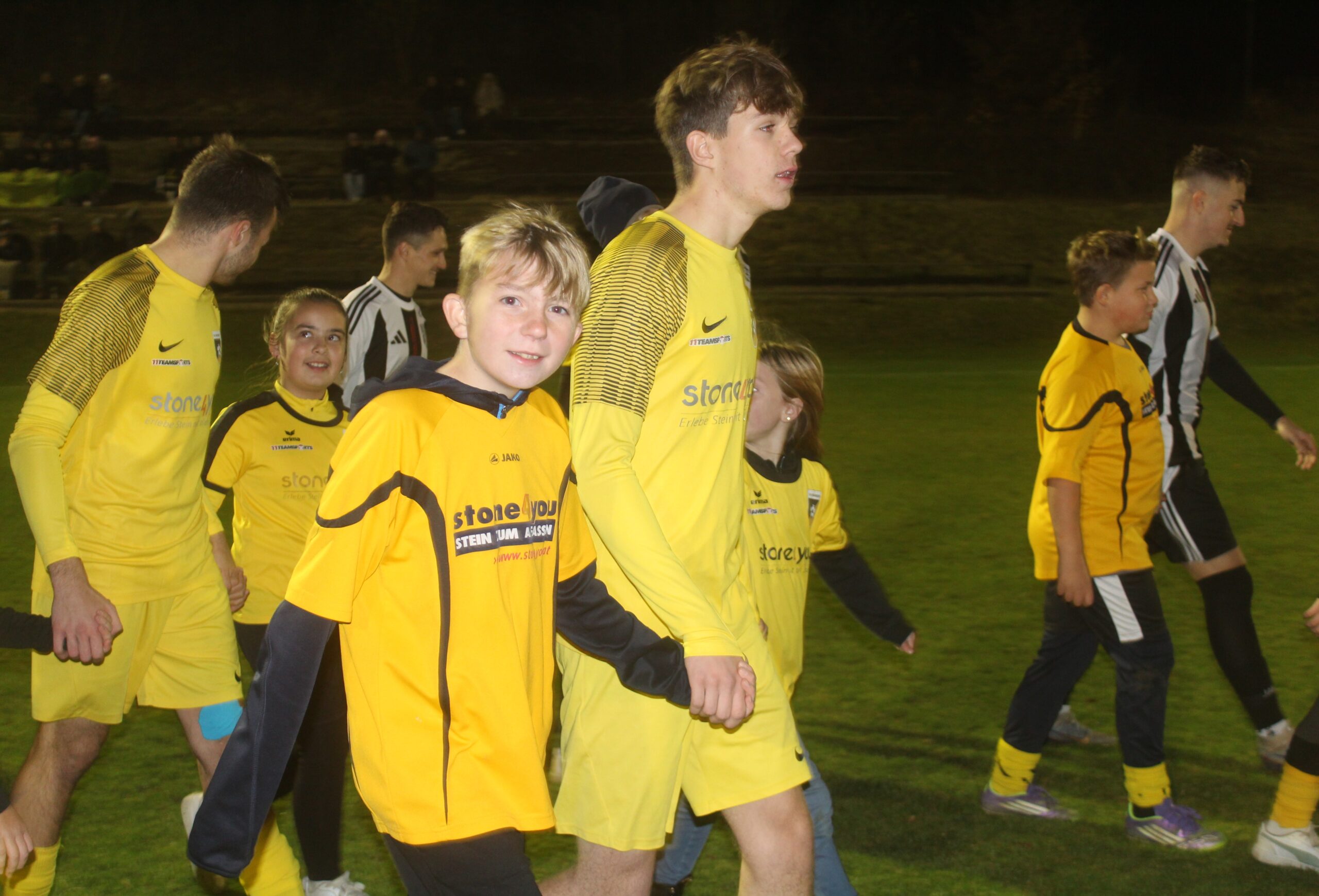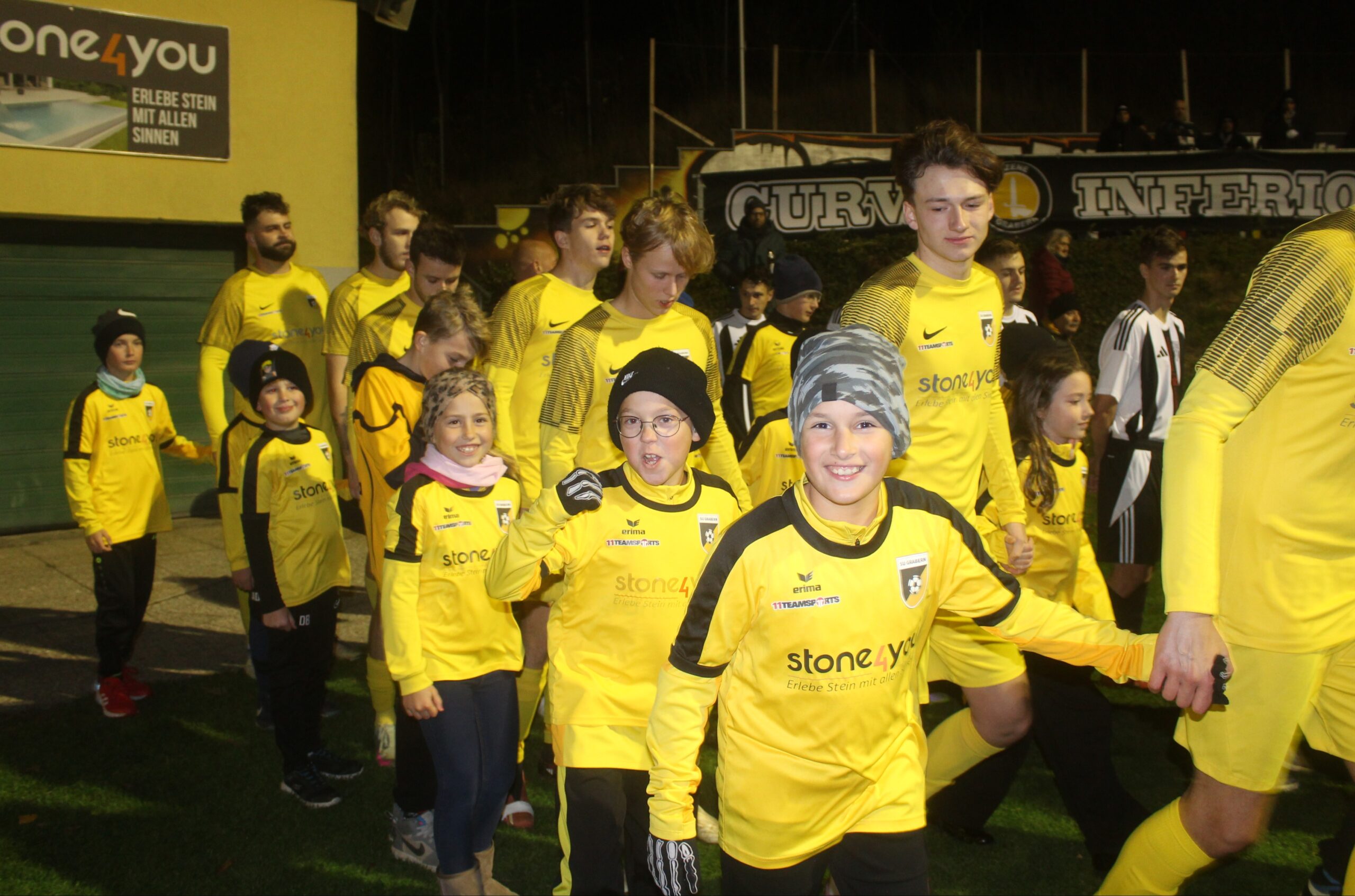 Im letzten Spiel des Jahres wurde unsere Kampfmannschaft von unseren zahlreichen Nachwuchsspielern aufs Spielfeld begleitet und startete gut in die Partie. Nach zehn Minuten brachte Kapitän Dominik Schwabl den Ball scharf zur Mitte. Den abgefälschten und dadurch schwer zu nehmenden Ball verwertete Oliver Schinagl zur Führung. Fünf Minuten später kam Vaclav Vasicek nach einer Ecke an den Ball und baute die Führung mit einem Schuss knapp neben der Stange aus. Da die Gäste danach einmal auf der Linie retten konnten ging es nur mit einer 2:0 Führung in die Pause.